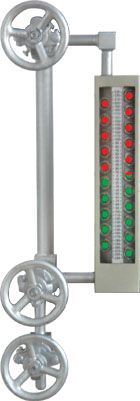 GYJ 雙色冷光源水位計是用于監(jiān)測鍋爐及壓力容器水位的一次直讀儀表,表體兩側視窗玻璃成一定夾角,儀表后側配置發(fā)光二極管光源,由于光學的折射及反射原理,氣相呈紅色,液相呈綠色,兩色界面即準確指示液面。